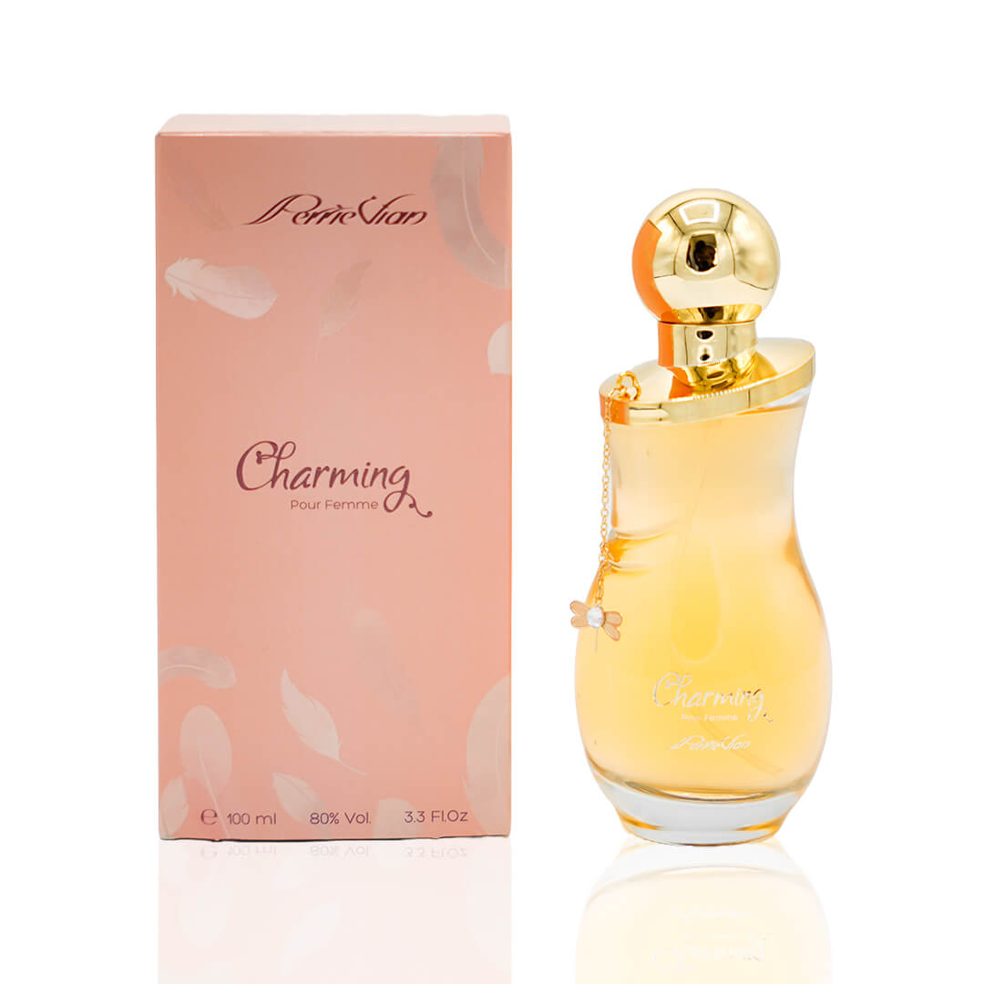 Charming Eau de Parfum for Women by Perrie Vian is designed to enchant and mesmerize. This exquisite 100ml fragrance features a harmonious blend of luxurious notes. The top note of Cassis opens with a burst of vibrant fruitiness, while the heart reveals the delicate essence of May Rose and Freesia. The base notes of Vanilla, Patchouli, Woody Notes, and Ambroxan provide a rich, warm finish that lingers beautifully on the skin. Ideal for any occasion, Charming adds a touch of elegance and sophistication to your presence.